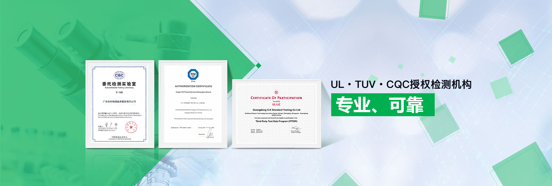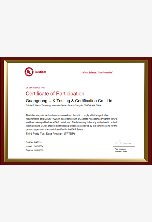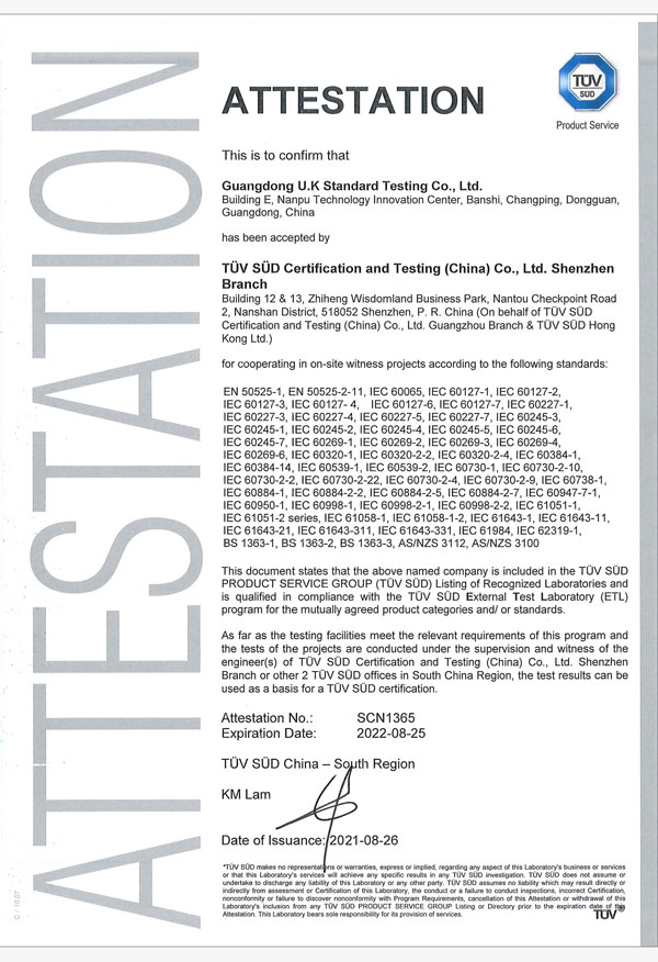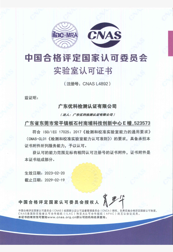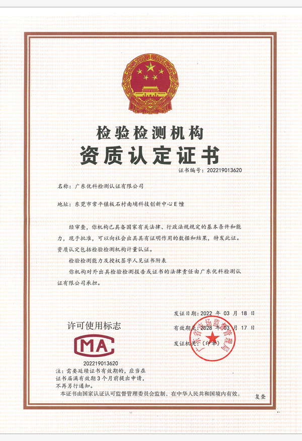 廣東優(yōu)科檢測認證有限公司(簡稱:UKK)成?于2007年,是國內(nèi)專業(yè)的汽車整車及零部件、電子元器件第三方檢測實驗室,國家級中小企業(yè)公共(技術(shù))服務示范平臺,獲得了國家?新技術(shù)企業(yè)、廣東省專精特新中小企業(yè)、市級工程技術(shù)研發(fā)中心等榮譽稱號。 More